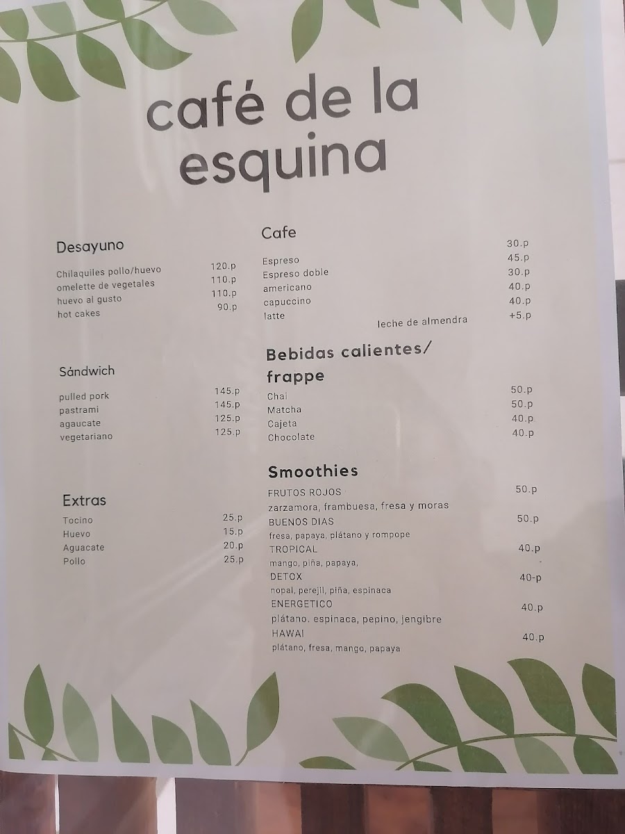 Welcome to Cafe De La Esquina, a charming little gem nestled at Tatanacho 1 in the picturesque town of Guadalupe, San Miguel de Allende. This delightful café offers a unique blend of flavors and a warm, inviting atmosphere perfect for breakfast or lunch enthusiasts.